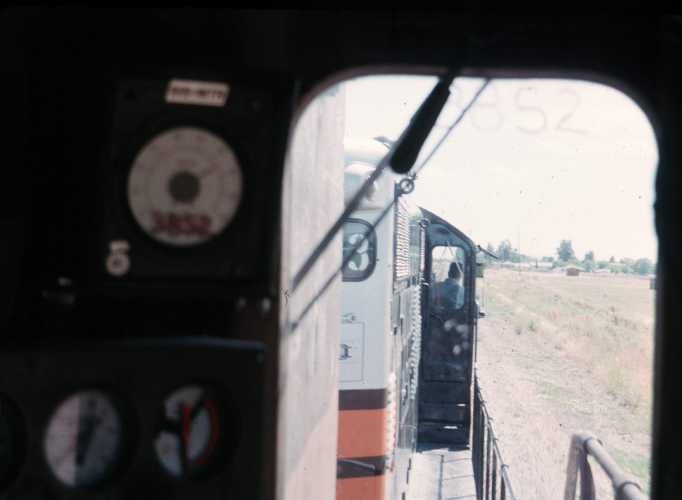 well worn Geeps, SP3852, SP3873 and 6415 tons of train. Errol coupled
