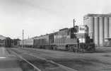 5623 and leading F7 6235 pulling out of College Park yard in San Jose