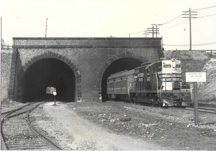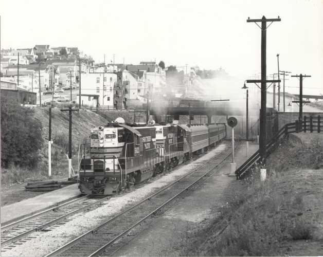 trailing, about to enter San Francisco's tunnel 1 in 1961. The lead GP9