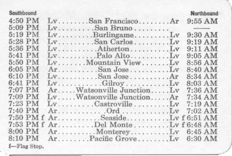 cars will be left in San Jose. The return Del Monte was train 139 and