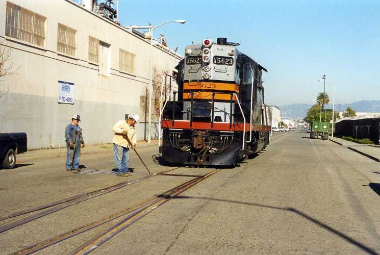 down Union Street. Switching at Magnolia with Amtrak #6 and Treasure Island