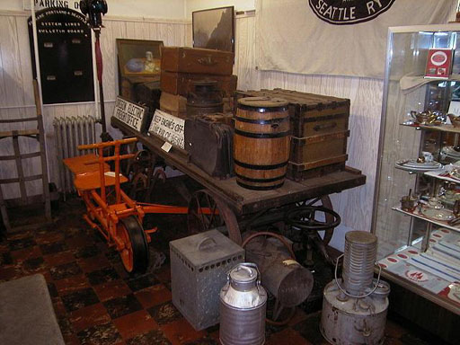 The museum has hands-on exhibits which allow visitors to ring the steam engine bell, and tap out a set of train orders on a working telegraph key. Tape recordings of authentic railroad sounds have been incorporated into the museum. A display of SP&S Dining Car Silver, Flatware and China Dishes from the 1930's through the 1950's (including a rare pattern made especially for the SP&S Business car #99). The Telegraph Office exhibit contains display cases full of hand lanterns, lamps, keys, locks, timetables, uniforms, caps and buttons, badges, datenails, and metalware.