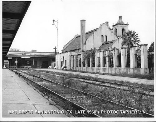Trackside, passenger loading platforms. This photo may have been taken after the station had already been closed to passenger service.