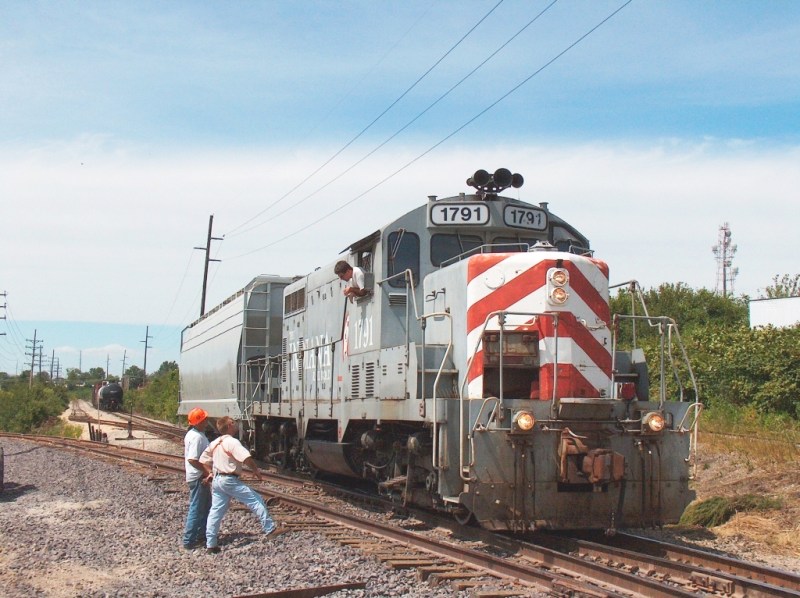 The Central Midland Railway runs on the former Rock Island St. Louis Subdivision from near Kansas City, MO to Rock Island Junction, near St. Louis Missouri. The line was originally built by the St. Louis & Western in 1887 to link St. Louis with Kansas City and points west. The Rock Island operated the line until their bankruptcy in 1980, although some mystery surrounds the date of the last train, as the line was in such poor condition, it is possible the last through train ran in 1979. In 1980 the Southern Pacific took over operation of the line, with initial intent to upgrade the entire route from St. Louis, Missouri to Tucamcari, New Mexico, however, because of trackage rights granted to SP as a condition of the UP / MP merger, the SP found no reason to operate the line as a through route between St. Louis and Kansas City. SP operated a local between Lackland Yard and Owensville until the mid 1990s, then cut back their operations westward to Union, MO. In addition to the local, SP also ran a coal train generally once a week from April 1990 to July 1995 to Union Electric’s generating plant at Labadie, MO. This train operated over the UP’s Sedalia Subdivision into St. Louis, then on the TRRA from Gratiot Tower to Rock Island Junction, and west on the SP to Labadie. The 1996 merger of the SP into Union Pacific resulted in UP’s continued operation of the line. Unit coal trains to Union Electric were discontinued as UP already had access to Labadie via their Sedalia Sub. UP ran a local to Union as well as a yard switcher to work various industries in Maryland Heights and near Lackland Yard. UP leased the line from Vigus to Pleasant Hill, MO in 2000 to a newly formed railroad, the Missouri Central. Original power for MOC was leased EMD GP7, Midwest Locomotive (MWLX) 2017. The only unit named for Missouri Central, MOC GP7L 1800, came to the railroad in late 2000. - Pat ScottLocations: The Central Midland's base of operations is at the former Rock Island Lackland Yard in Maryland Heights, MO. Directions: -Adie Rd.: