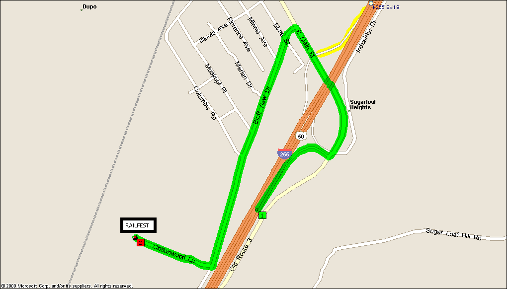 Make a right onto Cottonwood Ln. (no street sign) and take it to Railfest (look for "Dead End" sign, right after ballfield, just before insulation company).