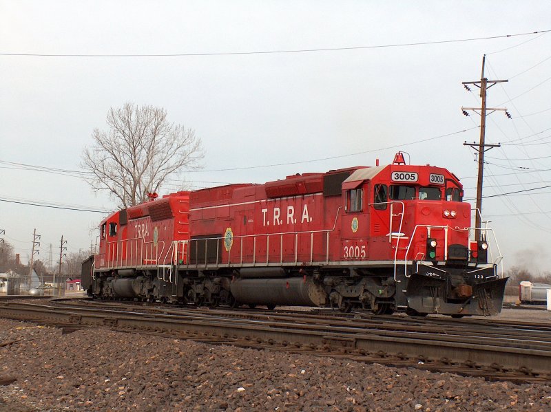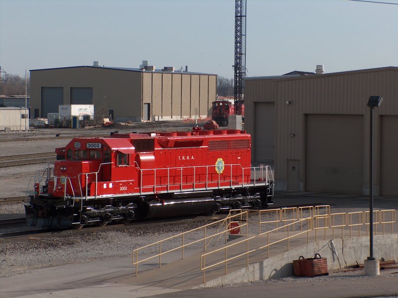 T.R.R.A. All Time RosterAll-Time Diesel Roster This is the most complete roster I could find, it is however lacking some information due to the fact that the T.R.R.A. now rosters a sizable fleet of second hand six-axle power. This includes: TRRA #1751 .......... EMD SD7R TRRA #2204 .......... EMD GP38 TRRA #2205 .......... 4-axle road slug TRRA #2206 .......... 6-axle road slug TRRA #3001 .......... EMD SD40T-2 TRRA #3002 .......... EMD SD40-3 (SD45 carbody) TRRA #3003 .......... EMD SD40R TRRA #3004 .......... EMD SD40-3 (SD45 carbody) TRRA #3005 .......... EMD SD40T-2 NOTE: Most of the 2nd Gen. six-axle units are of Southern Pacific heritage, while the SD7 (rebuilt by MRS Shops with a low short hood) is a former Pennsylvania RR locomotive. References: I'd like to thank Keith Belk and Scott Ikemeyer for compiling this data for St. Louis Railfanning. |