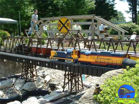 Two trains cross the trestle
