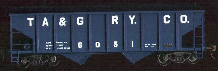 This TAG hopper model was constructed by Russell Underwood from a Walthers two-bay car.
