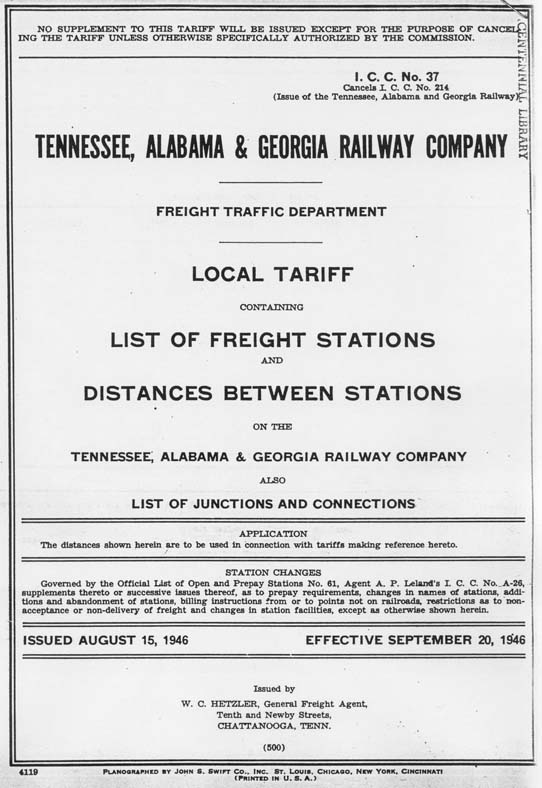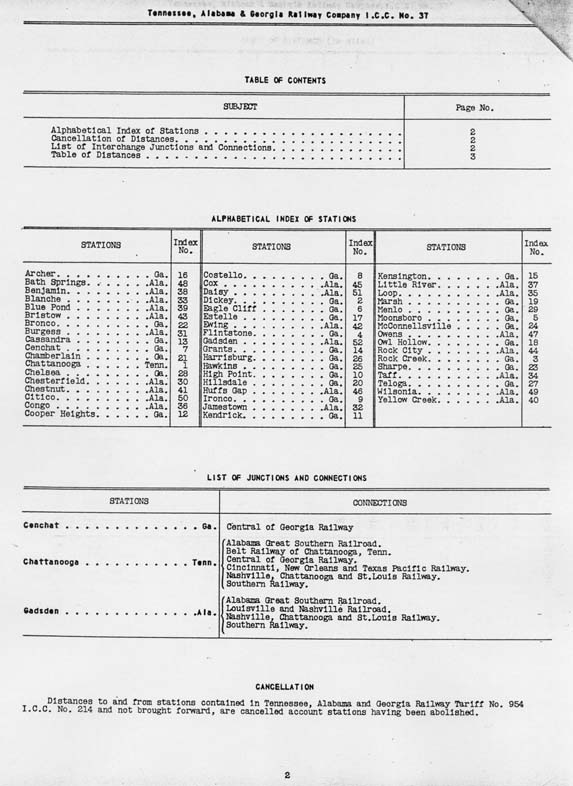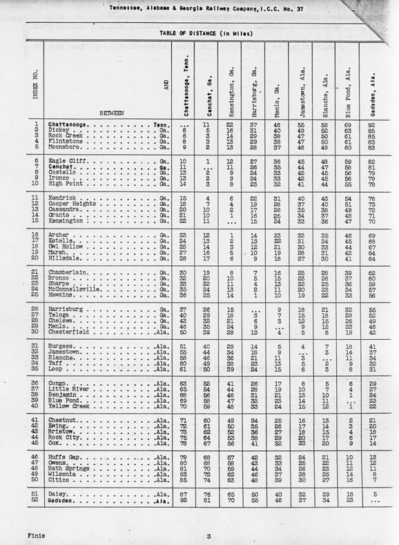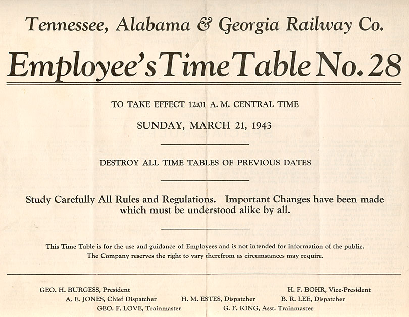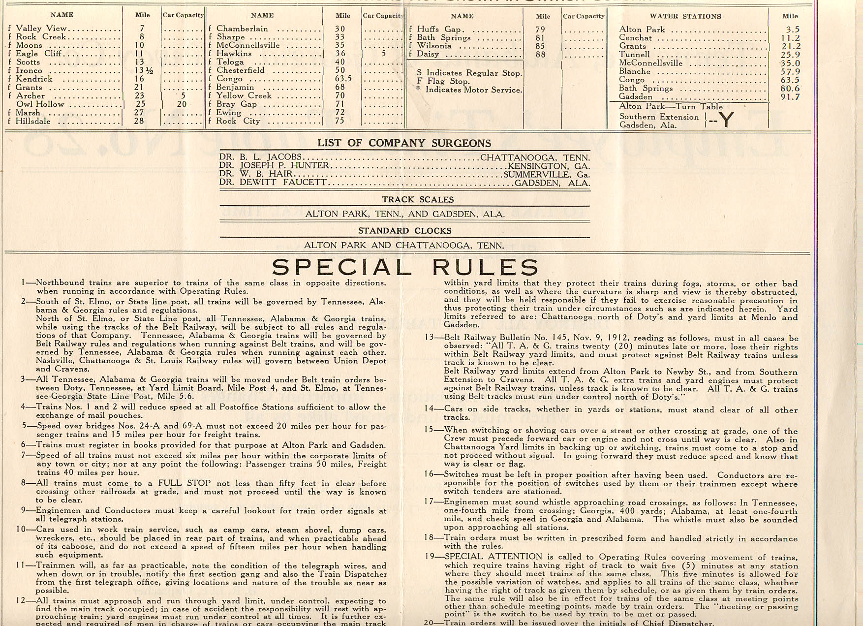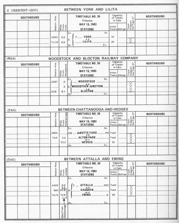 - Southern Railway Timetables involving ex-TAG Railway trackage, courtesy of Warren Stephens