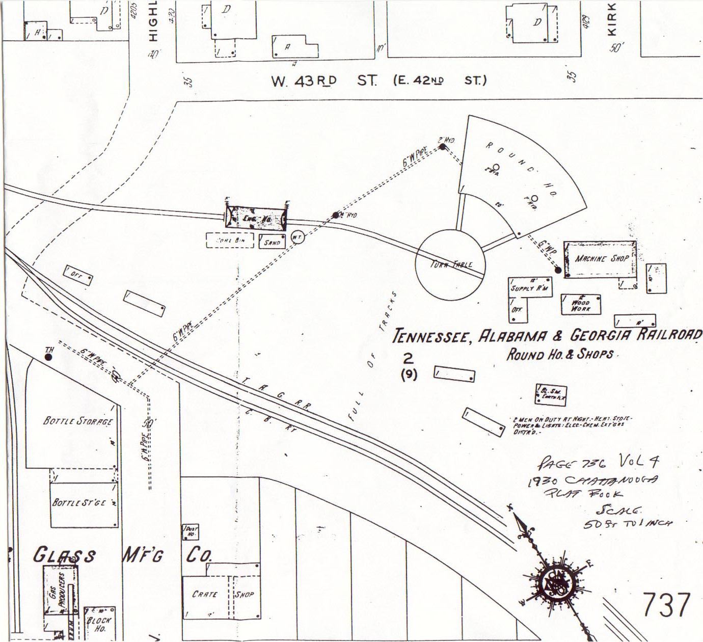 Map of the Chattanooga TAG Railway yard in 1930. Drawing courtesy of Warren Stephens. |