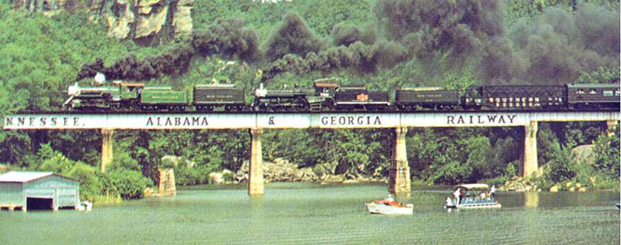 The TAG had a large trestle just south of Blue Pond, AL, over Yellow Creek. In this view, a Southern Railway steam
