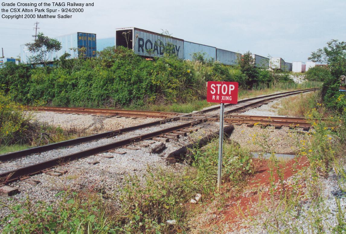 At-grade crossing of the TAG line and the (now) CSX Alton Park Spur. Taken