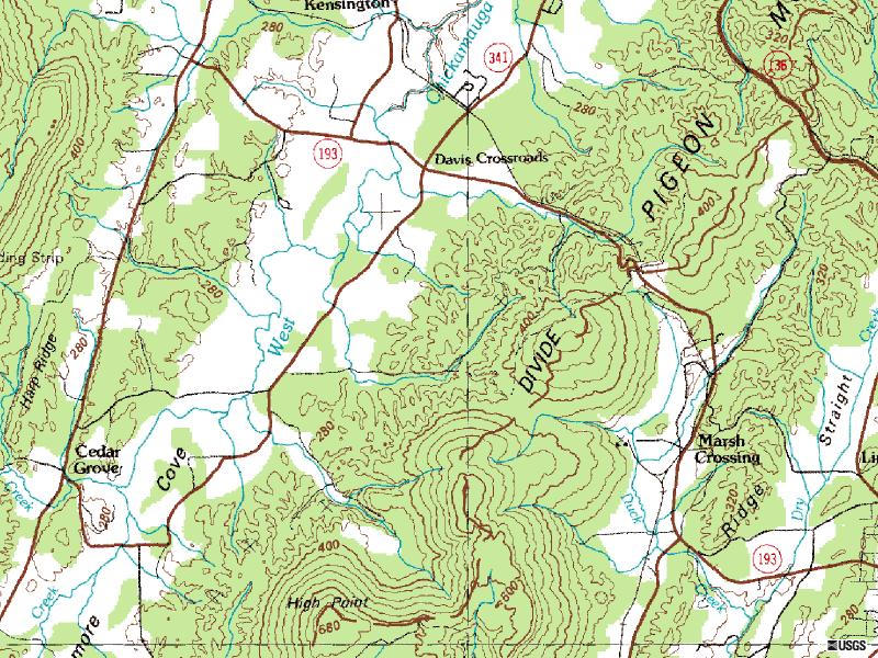 4 meter resolution topographic map, courtesy of the U.S. Geological Survey and the Microsoft TerraServer. |