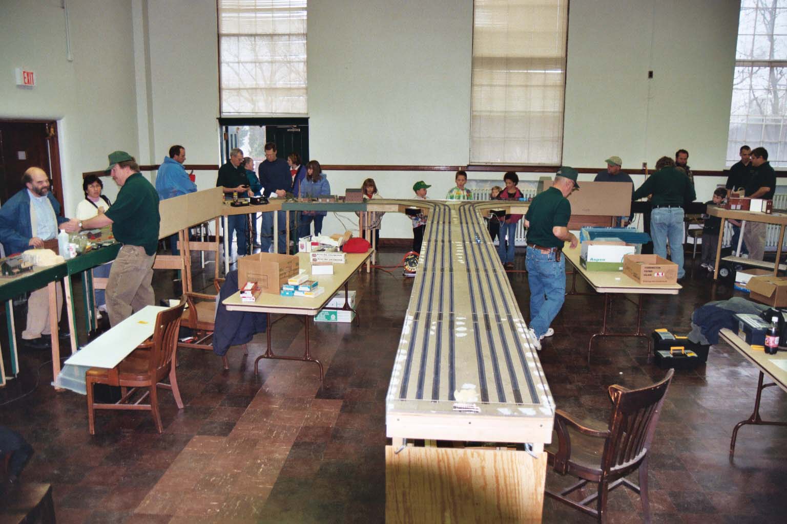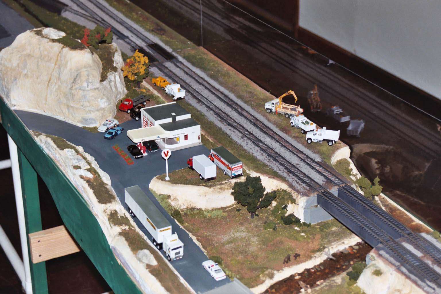 speeds by as a NS switcher spots some car on John Bussano's module.
