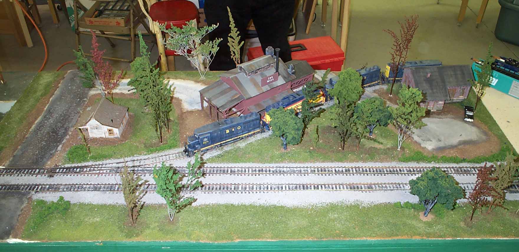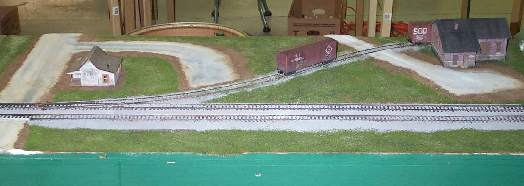Jeff took possession of an abandoned module and resceniced it. This module represents a main line branch that services two industries (only one is in place in this photo).