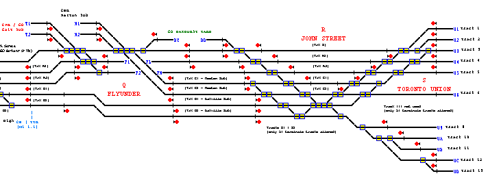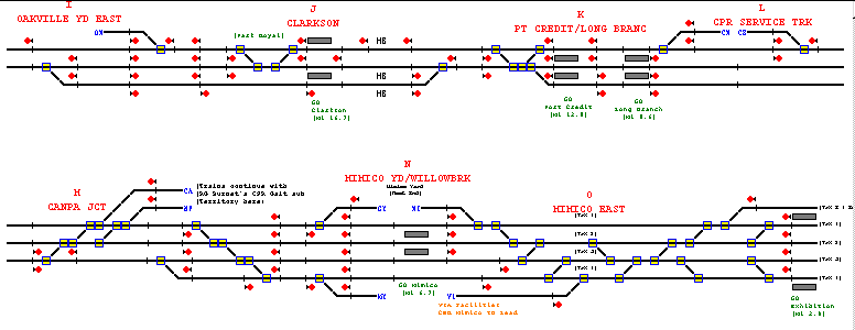 Below are SUBDIVISION NOTES and LINKS for the CNR Zone Maps. All maps are authentic Canandian National Railways track schematic maps dating between 1962 and 1982 for the Great Lakes Region / Ontario Division. The Oakville Subdivision I converted to a Train Dispatcher Computer simulation in 1999 and from CNR maps designed between 1964 and 1968 for the GO Transit expansion on the Lakeshore Corridor.