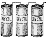 | The telegraph consists in a combination of four parts: 1) a battery, which produces the electrical current The CPR and CNR required all student operators to become thoroughly familiar with all the practical features of the apparatus and mechanisms of the telegraph. It is not only a great aid to the prospects of advancement for the student operator to have a thorough knowledge of the electrical theory of telegraphing and to understand all about the batteries, the wires, and the instruments. THE BATTERY: This is the first and most essential part of a telegraphic apparatus. It is by the chemical action in the battery that the electric current is made to traverse long or short distances through the conducting medium of iron metallic wires, and by means of the proper instruments made to give out tangible signals which, being in the form of an alphabet, enables us to read or speak instantaneously through great distances, for the electric requires but a small fraction of a second's time to travel many hundreds of miles through the wires. The basic battery in 1886 was known as the "Gravity Battery." It consisted of three parts: the jar, the zinc, and the copper. The jar is of glass and is about five inches diameter and seven inches deep. The Zinc is provided with a brass connecting screw at the top of the arm - the arm serves as a means of supporting the zinc in a proper position. | The connecting screw is used to bind or connect a copper wire to the zinc, which is called the "negative" or "zinc pole" of the battery. When the battery is charged for operation if the wire projecting upward from the copper be connected with the zinc by binding the bared end of the wire from copper to zinc, a current of electricity will constantly flow through the wire from copper to zinc, and will cease to flow the moment the wire is disconnected. If the wire from the copper be extended to a mile in length, and its end connected in the same manner with the zinc, the current will flow through the entire length and come back to the zinc, just as surely as though the distance were but a few inches, and will instantaneously cease to flow the moment the wire is disconnected or broken at any point in its entire length. Where powerful currents are required, additional cells are added by connecting either the copper or zinc pole of the first cell to the opposite pole of the next, and so on; so that in a series of fifteen or twenty cells, if the unconnected pole of the cell at the one end was copper that pole would constitute the copper pole of the entire battery, and the unconnected zinc at the other end would be the zinc pole of the entire battery. By connecting the end of the wire of any length to the zinc or copper pole of such a battery, and its opposite end to the remaining pole, a much more powerful current would pass through the wire than if the battery consisted of but one cell. Telegraph companies on their long lines use batteries of from twenty to one hundred cells each. See some examples below: |