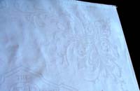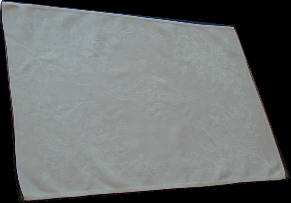 This napkin has a beautiful tone-on-tone T&P logo in the center, with an intricate floral detail in the corners, typical of the Damask style. It doesn't photograph well, but it is gorgeous. |