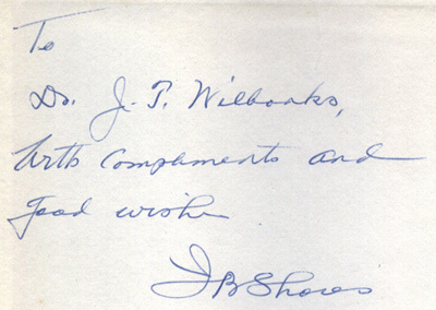 This particular copy is signed by J.B. Shores, longtime director of the T&P's Public Relations Department. Note that Mr. Shores dedicated this copy to "Dr. J.T. Wilbanks," but the opposite page reads, "Library of T.J. Wilbanks." |