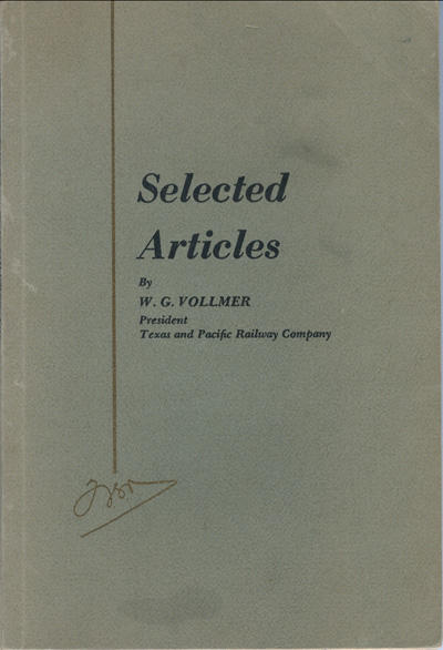 This collection contains 35 articles by Mr. Vollmer, most of which I think originally appeared in the employee magazine. The titles include"Fruits of Freedom," "Lifeblood of Our Railroad," "Creed for Business," and "Not Things, but People."