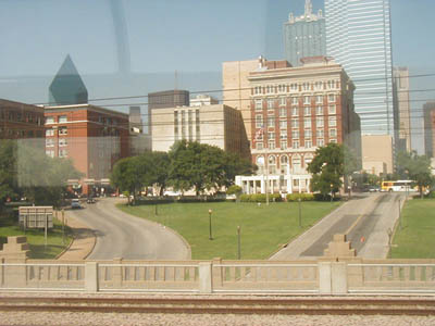 Dealy Plaza as seen from the infamous "Triple Overpass" - I was riding the "Texas Eagle" when I took this. |