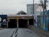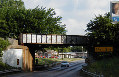 This graffitti-covered underpass used to cross Good-Lattimer Blvd., just east of downtown. Note the "T&P" sign above the street. |