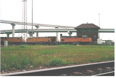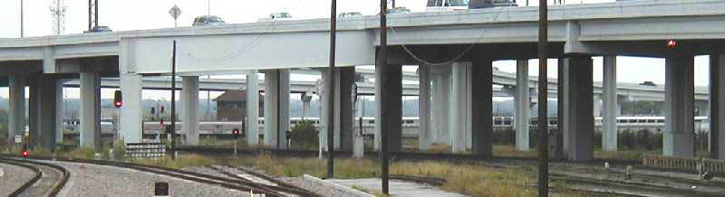 As you can see from these photos, Tower 55, which was once regarded as the prime trainwatching spot in all of North Texas, is now closed and completed covered by freeway overpasses, which were under construction when these pictures were taken. If you want to see what it was like when it was still operating, I highly recommend Pentrex Video's Tower 55. Click here to visit Texas Interlocking Railroad Towers. |