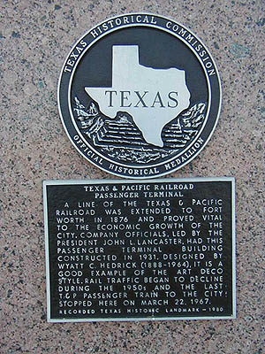 Ft. Worth The T&P Station is an Art Deco palace. It is currently in use as the western terminus of the Trinity Railway Express.