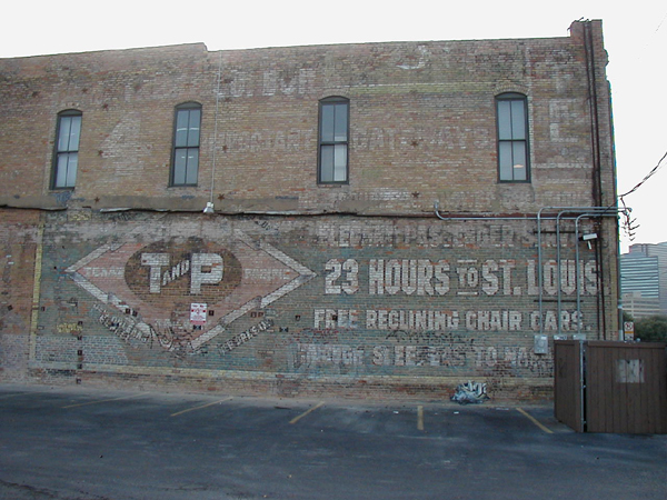 What a great find! This T&P billboard is in the "Deep Ellum" area, just SE of downtown Dallas - 2528 Elm Street. |
