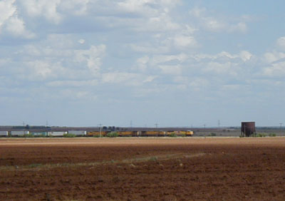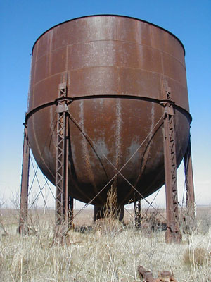 A few of T&P's steel water tanks are still standing in West Texas. This one is south of I-20 at Mile Marker 223. |