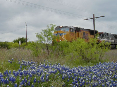 This isn't a T&P picture, but it IS on the former T&P main, I like bluebonnets, and it's my website, so there you go. |