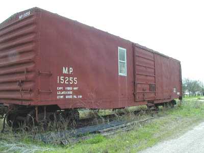 These two MoPac MOW cars are parked in Strawn on a siding that was cut off from the mainline when the siding was paved over. Oops. | |||