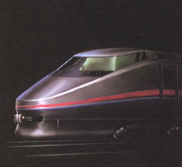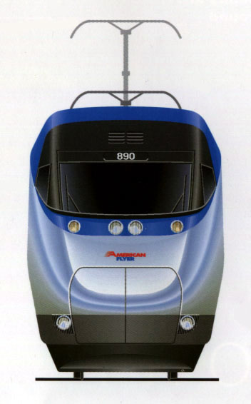 A front view of the American Flyer power car. Several details differ in the final Acela Express design. From a 1997 Bombardier marketing brochure.