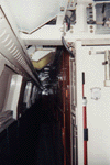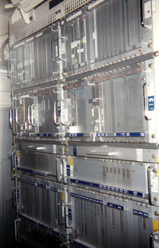 The signalling and on-board computers, located behind the cab inside a TGV power car, at about the level of the exterior access doors. To the right leads into the cab, and to the left is the gangway.