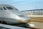 The 18:23 TGV to Rennes pulls up to the southbound platform of the