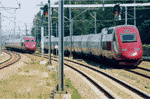 Two Thalys trainsets passing each other at the station in Voorschoten,