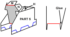 Step 20 Use a tool (your fingers will be too big) to apply a small amount of glue to flaps N and press them onto the inside of your model such that the gray wall of part 5 is vertical.