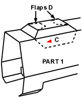 Step 3 Before cutting out, score the main body (part number 1) at each place indicated by the arrows, as well as at the base of flaps D.