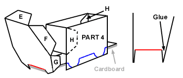 Step 20 Glue flaps H to form the ends of the bogie box. Part 4 should look like figure 4 above when you are done assembling it.