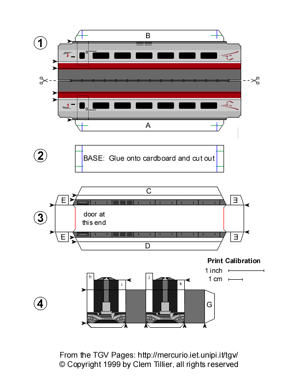 Prototype (PBA type) Model (PBKA type) This is a complete scale model of the Thalys high speed train. You can build either of two prototype trainsets: Thalys PBA (with the older-style power car) and Thalys PBKA with the new power car. For exactly what makes a PBKA different from a PBA, see TGV Spotter's Guide and article. Select the links below to view and print the parts sheets, making sure to read the corresponding instruction sheet before starting. Each vehicle will take you about 45 minutes to 1 hour to build. I wish to thank André Sintzoff and Tanguy Couvrat-Desvergnes for their help in getting the details right.