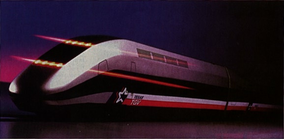 The Texas TGV, as envisioned by designer Roger Tallon (photo: GEC Alsthom)The Texas TGV project, cancelled in August of 1994, was to connect the "Texas Triangle" (Dallas - Houston - San Antonio) with a privately financed high speed train system.