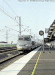 Out on the platform, all is quiet, except for the wind and the droning of trucks on the nearby A1 highway. Your eye quickly gets bored of the empty platforms, the lonely station building, the endless fields, and comes to rest at the vanishing point, a distant convergence of rails, catenary masts, and wires. Suddenly, a point of light... three points of light, in a rapidly growing triangle. The rails twitch with sound for a few short seconds, and frightfully quickly the beast is upon you in a deafening roar! Before your senses can take it all in, two red tail lights recede into the distance and the quiet returns, with only a faint squeaking from the still bouncing wires above. Vanishing point to vanishing point in less than twenty seconds... you'll have to repeat the experience several times; it goes far beyond a smooth and quiet ride aboard a TGV. Luckily, there is a lot of traffic on the lines, on average a train about every five minutes.