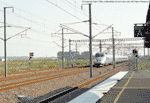 Step One: Do a little planning with some TGV timetables. These are available as guide booklets at all Paris stations, near the ticket office. You want to get the timetables for the TGV Nord-Europe, Thalys, and Eurostar. Thalys and Eurostar timetables are available on the web. You will be leaving from Paris Aéroport Charles de Gaulle TGV and arrive at TGV Haute-Picardie. Your train is a TGV Nord-Europe, serving the Nord Pas de Calais from the Ile de France region. Travel time is about 28 minutes but trains that stop at Haute-Picardie are quite infrequent (only two per afternoon), so be careful with your timing. Plan to stay there for about an hour; you'll probably get bored if you stay longer, unless you're crazier than I. Once you have decided on your arrangements to get to TGV Haute-Picardie, you can use the timetables to estimate when trains will pass by. As a rule of thumb, the station is about 32 minutes from Paris-Nord; use this fact to deduce your own schedule of passing times at Haute-Picardie. This schedule will come in handy once there, since you will first be able to see an oncoming train's headlights only about 10 seconds before it reaches you. It's good to know what's coming from what direction and when.
