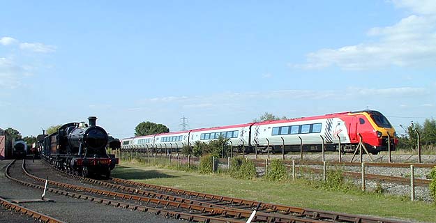 This last photo is of a Virgin Voyager Cross Country train on the line from Oxford. Click here to read our description of this and other new Virgin trains in the Friends of Amtrak Photo Gallery..