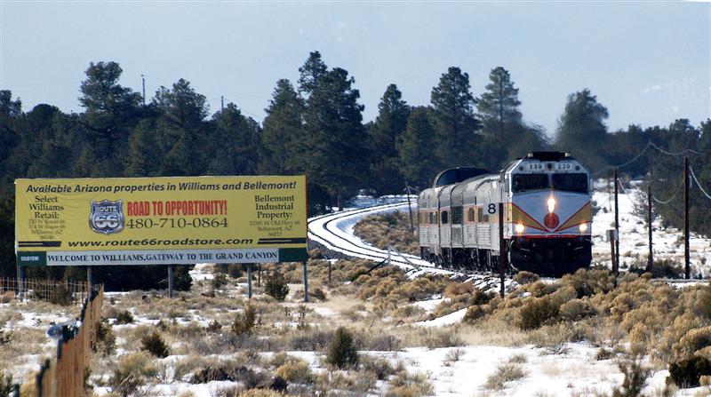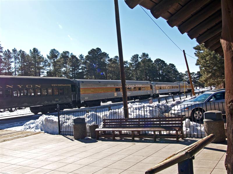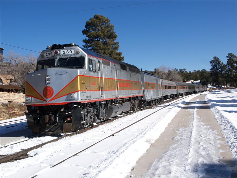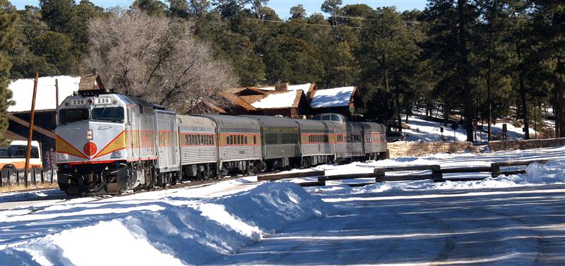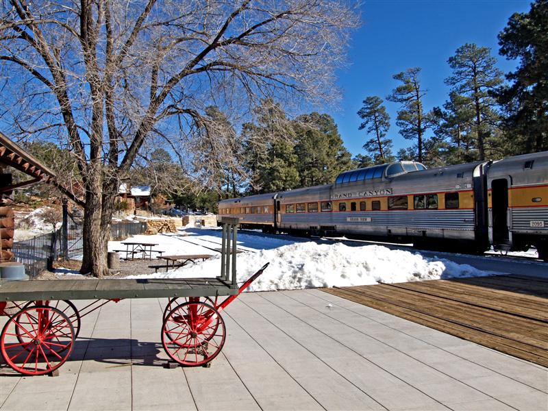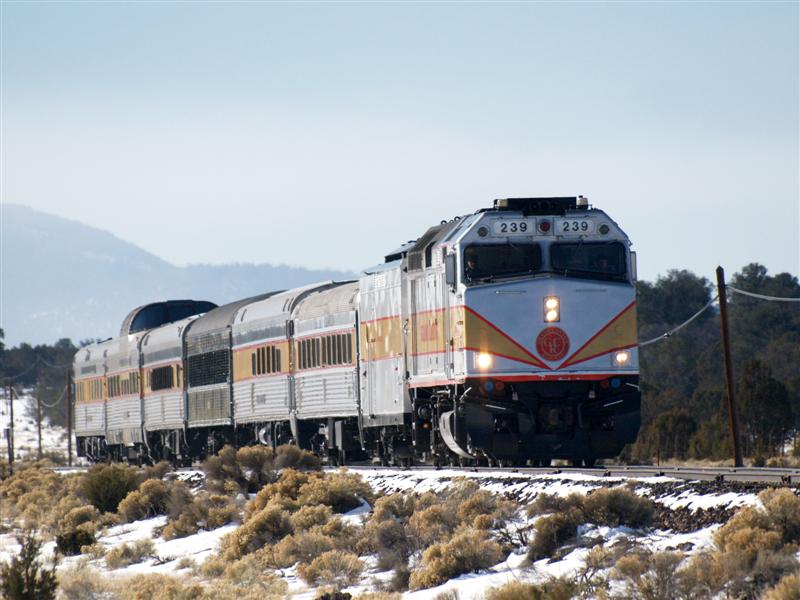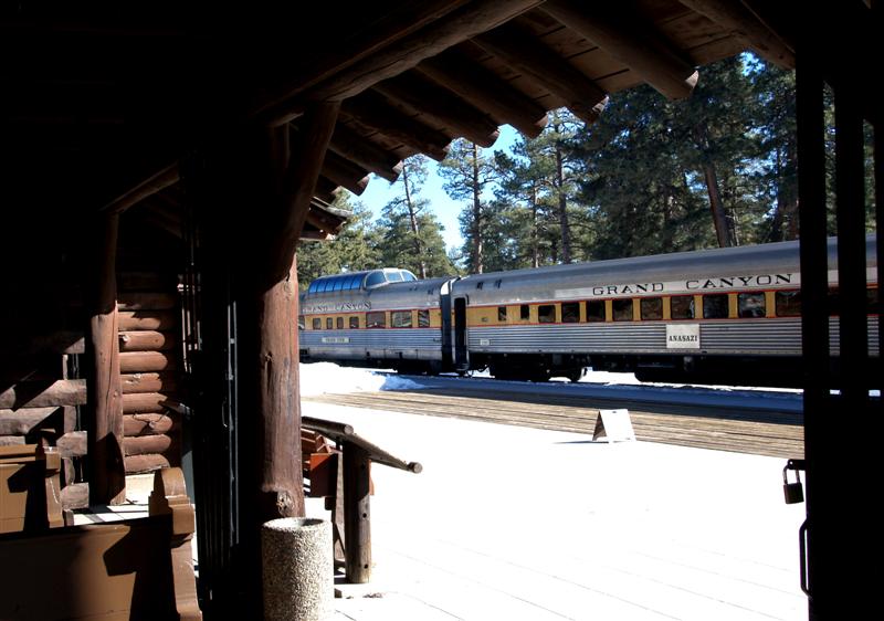 winter train on the way from Williams to the canyon, the train in the