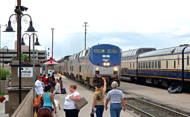 At one time Amtrak trains arrived at the venerable Alvarado Hotel, where one could step off and enjoy a meal in the dining room or, right up until the end of Santa Fe, purchase Native American arts and crafts. Today Amtrak is served by a rather forelorn appearing station that is more attractive on the inside than outside.