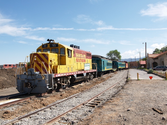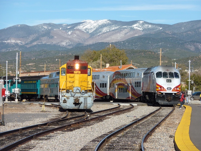 Rail Runner shares the old Santa Fe station in the Railyard section of Santa Fe with the Santa Fe Southern, a short excursion line that heads down in the direction of Lamy.
