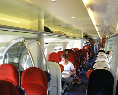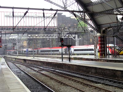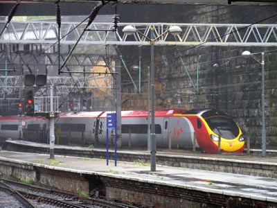 Below is a Virgin Pendo crossing the Runcorn bridge, near Liverpool. The photo was taken from my seat. ![]() From 2010 Run time between Euston and Liverpool Lime Street has been cut dramatically, in part thanks to a reduction in station stops by Pendolinos. There has been a flurry improvements in passenger services at both ends of the lines. Here are a few shots of the new first class lounges for Virgin passengers at Lime Street. I had a hard time getting in (to open a door one needs a ticket with a magnetic stripe; there is virtually no way for a passenger with a pass to open it), but a fellow passenger helped me. Once inside there are comfy places to sit, and lots of coffee, tea, and little cookies and candies. No booze or passenger agents. But, for those accustomed to the once grimy Lime Street station a real improvement. ![]() ![]() ![]() We end with a shot of an 'almost Virgin look alike', what British correspondent Paul Hutchinson tells me is a Southwest 2 class 458 electric, taken from my Virgin Airways 747 at about 10,000 feet, somewhere near Windsor, in 2005. Oh well, I thought it was a Voyager, but since it's a fun picture I'm including it. Like Virgin Trains, the airline provides friendly service and seems very customer focused (though I'm sure some of my UK friends would question that observation as applied to Virgin Trains!). ![]() We returned to the UK in April, 2009. Our travels on Virgin were limited but we have some new photos, taken in Euston and Lime Street, and on the West Coast Main Line in southern Scotland. Click here to see them. We'll be posting many more photos from our recent UK travels, so check back often. ![]() |