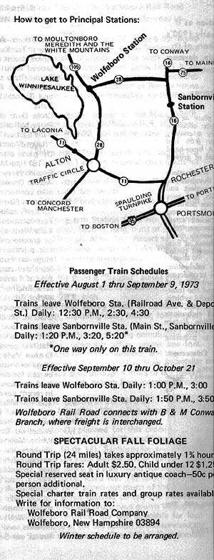 the early 1980s, the timetable from 1973. Wolfeboro is a resort town on