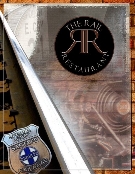 Happy Hour! Whether you live in Orange County, California, or are just visiting, you have to drop by The Rail Restaurant! Railfan or not, you will have a great dining experience in this restaurant that reflects the railroad history of Fullerton with a rail motif throughout. Don't miss the giant murals painted by rail artist Ken Barrett, especially the one of a steam locomotive barrelling by the historic Fullerton Santa Fe Depot! When you visit The Rail Restaurant, be sure to tell them you saw this web site. |
